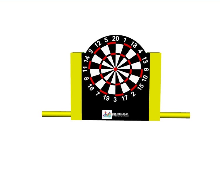 Twice the fun, all in one inflatable! the Hoops & Darts Duel is a 2-in-1 interactive game featuring basketball hoops on one side and a giant dart game on the other side. It's perfect head-to-head challenge for kids and adults alike whether you're shooting your shot or aiming for the bullseye!